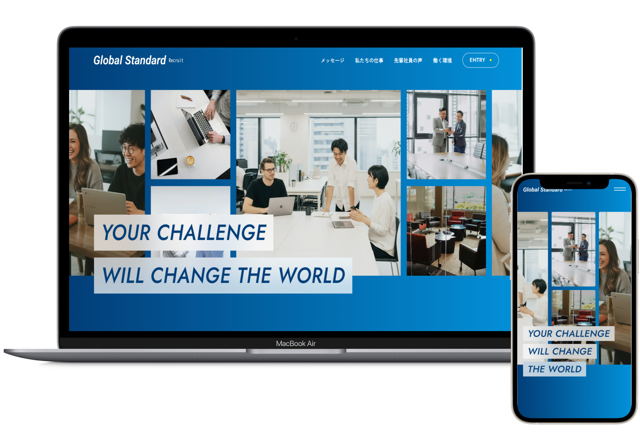 各デバイス対応のレスポンシブはもちろん、GSAPやCSSを使用したアニメーションの実装も可能です。 -
